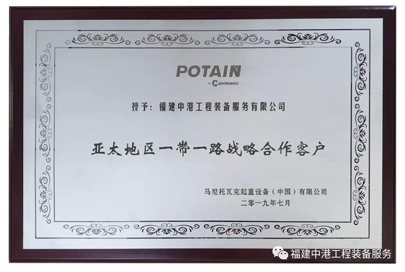 作為一家綜合性專(zhuān)業(yè)化工程裝備服務(wù)公司,中港公司立足“高起點(diǎn)建設(shè)、高質(zhì)量管理、高效能運(yùn)作、高標(biāo)準(zhǔn)服務(wù)”的高地平臺(tái),始終如一堅(jiān)持規(guī)范運(yùn)作、科學(xué)管理,憑借全方位的技術(shù)支持、強(qiáng)大的設(shè)備實(shí)力和安全可靠的安裝維修能力,贏得了顧客的忠誠(chéng)和美譽(yù)。先后榮獲“中聯(lián)重科五千萬(wàn)級(jí)戰(zhàn)略合作伙伴”、“中建二局第一建筑工程有限公司AAA誠(chéng)信供方”、“第十三屆全國(guó)建筑機(jī)械租賃企業(yè)設(shè)備管理優(yōu)秀單位”、“中建二局第一建筑工程有限公司2015年度優(yōu)秀分供方”、“中建海峽建設(shè)發(fā)展有限公司2016年優(yōu)秀合作企業(yè)”、“中建三局集團(tuán)有限公司(粵)2017年度良好合作單位”、“2018年全國(guó)建筑施工機(jī)械租賃50強(qiáng)企業(yè)”、“廣東省建筑機(jī)械租賃、安裝企業(yè)信用評(píng)價(jià)B級(jí)”、“2020年中國(guó)塔機(jī)租賃50強(qiáng)”等。